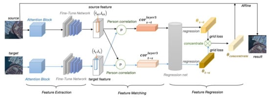 The structure diagram in this study is shown in Figure 1. Feature extraction, feature matching, parameter regression, and affine transformation are the main features used to obtain the final registration result.