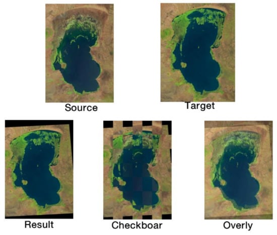 Figure 10 shows an image from the Multi Temporal Remote Sensing Registration Dataset—a pair of multi-temporal images of lakes. According to the registration results, the two images are aligned. Changes in the lake area and vegetation coverage are observed by both checkboard and Overly. How to establish the relationship between landscape spatial pattern and ecological environment function is a problem that needs to be considered after studying land utilization rate change.