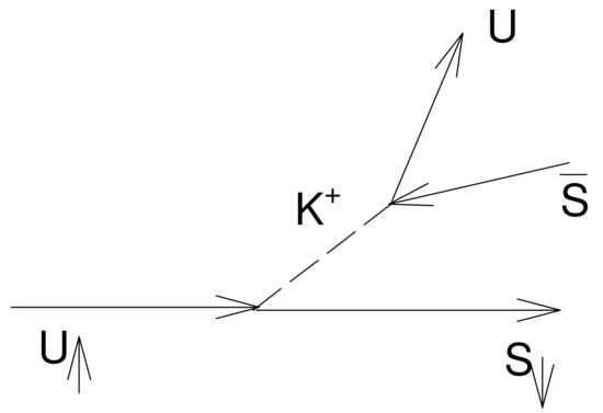Transition of the constituent quark U in the spin-up state to the strange quark in the spin-down state.