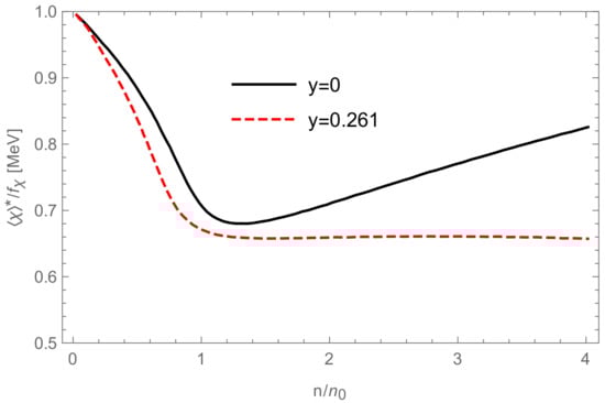 where the ellipsis stands for chiral symmetry breaking (quark mass) terms. Now, if one ignores the quark mass terms, then given that the which should be identified with the dilaton decay constant is independent of density as illustrated in Figure 2, we have