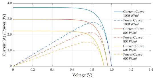 According to the characteristics of solar cells, photovoltaic power generation is related to the irradiance and temperature. When the temperature is constant, the I-U (current-voltage) curve and P-U (power-voltage) curve clusters of photovoltaic cells under different insolation are shown in Figure 4.