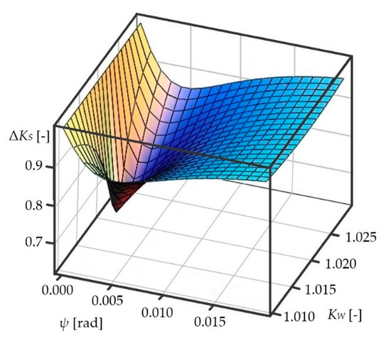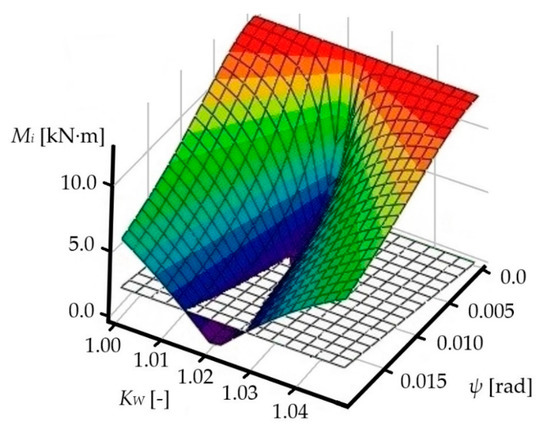 The dependency graph Mi = f(ψ, KW) calculated for the same initial conditions data is shown in Figure 7.