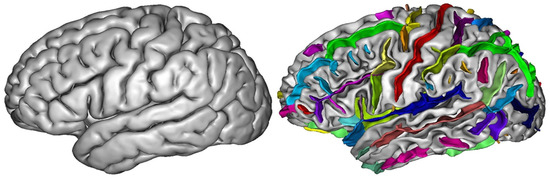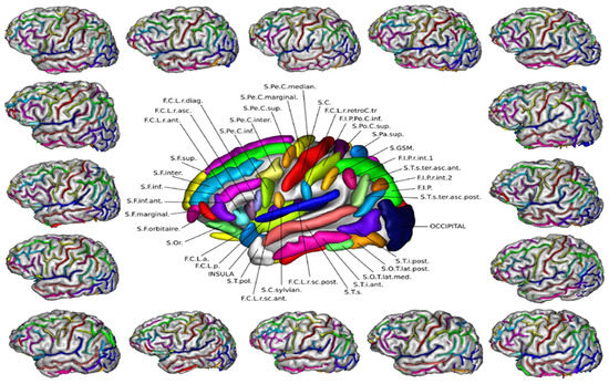 - Mangin, J.F.; Auzias, G.; Coulon, O.; Sun, Z.Y.; Rivière, D.; Régis, J. Sulci as landmarks. In Brain Mapping: An Encyclopedic Reference; Academic Press: Cambridge, MA, USA, 2015; Volume 2, pp. 45–52. [Google Scholar]