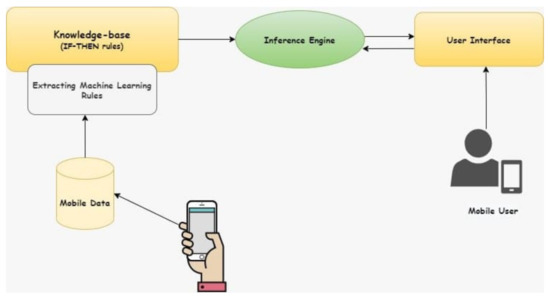 A structure of our mobile expert system modeling, where machine learning IF–THEN rules are used as knowledge-base for personalized and intelligent decision-making.