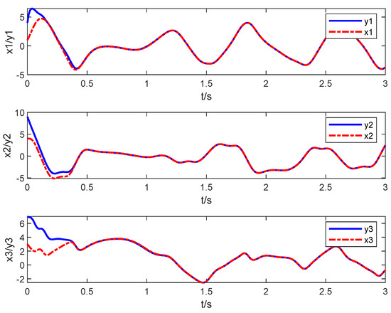 Then, according to error definition, the synchronization error is described as , , and . Substitute Equation (18) to Equation (17); then, the corresponding error dynamical system can be obtained as: