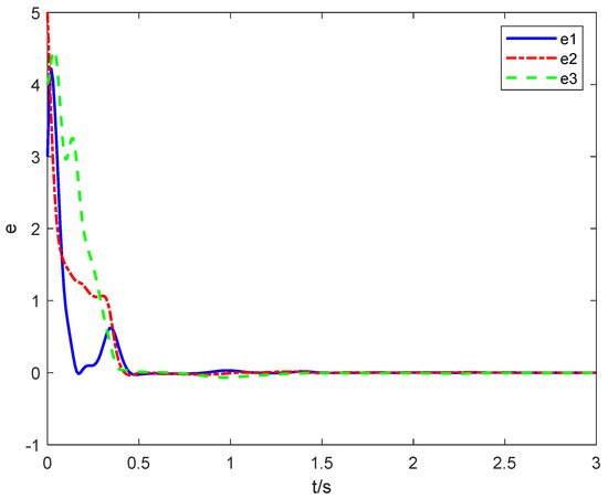 where , because . Therefore, , . The third equation of the error system (19) becomes ; in other words, . In addition, the first equation of the error system (20) is as follows:
