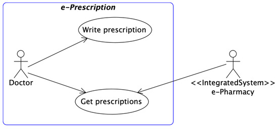 Figure 6 depicts use cases of the e-Prescription application. Thanks to the use of the ≪IntegratedSystem≫ stereotype, the external system is clearly visible in the diagram. We can see that the