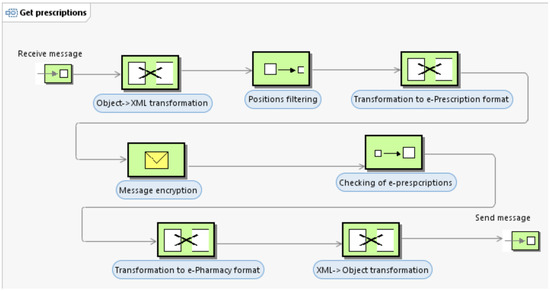 Each application has a different data format for a prescription and its realization. To read a prescription in the e-Pharmacy application, it should be transformed to the right format. Likewise, reading a prescription’s realization in the e-Prescription also requires transformation to the applicable format. Therefore, service execution onto ESB invokes specific integration flow.
