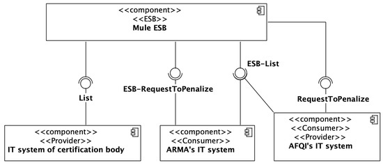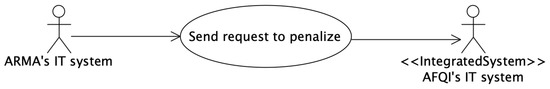 The ARMA supervises the whole process and checks the lists from certification bodies. In the event of non-compliance, ARMA punishes the certification body. This is done indirectly by AFQI. ARMA sends to AFQI a call to punish the certification body. The problem lays in the size of such a request. One call to punish may encompass 700 MB of data. Originally, the request data were burned to a DVD and sent by post. As a result, it usually took 2–3 business days for the request to reach AFQI. Therefore, the integration solution with ESB has been proposed to facilitate communication between those two authorities. In that case, the 1+5 model has been applied to design a single use case to send a request to punish a certification body.
