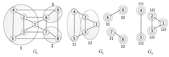 For the undirected connected graph, the multilayer partition tree of is set by the method described in Section 3, and the undirected connected Graph is divided into layers. If node is a tree node and is not the root node, then the definition of k-dimensional structural entropy is: