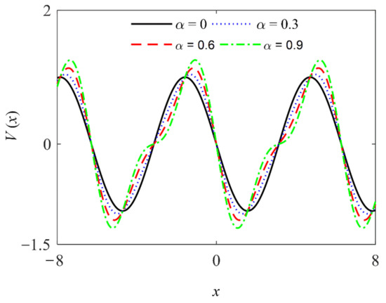 where denotes the asymmetric coefficient. The variation curves of the asymmetric periodic potential with different values are shown in Figure 2.