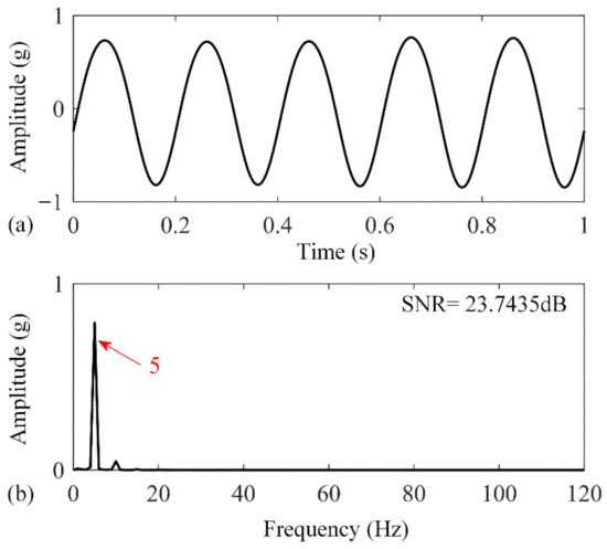 Simulation signal: (a) time domain waveform and (b) frequency spectrum.