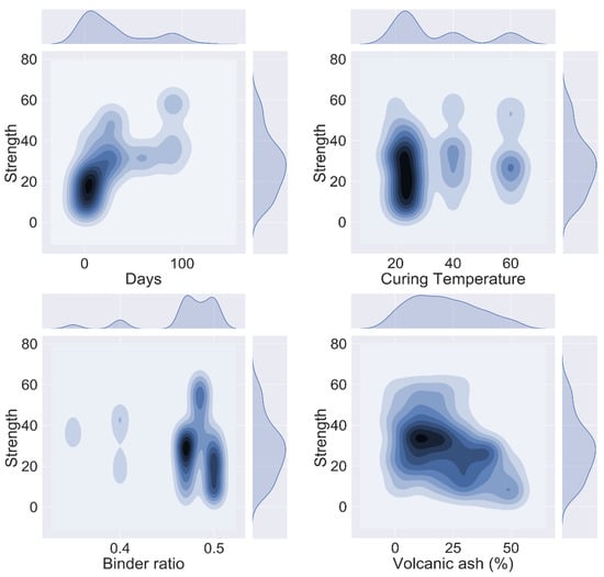 Using Python, five contour maps were drawn and are shown in Figure 6. As discussed in the previous section, the model performance is greatly reliant on the range of input variables. Thus, it is important to determine the optimal quantity of the variables rather than using experimental values. This offers a valuable representation to estimate the strength of VAM.