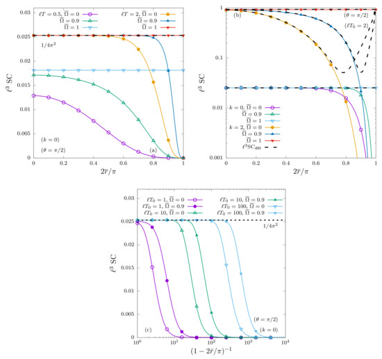 The above expressions are identical to the vanishing chemical potential limit () of Equation (4.22) in Ref. [61]. The large temperature limit can be computed using Equation (A18) to expand the modified Bessel functions: