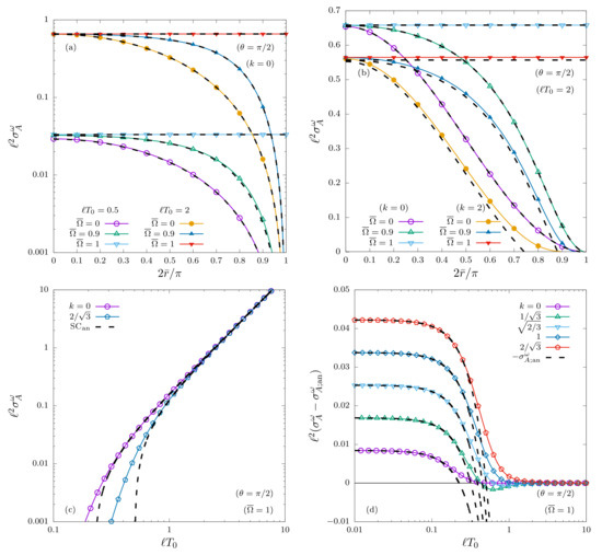 Since and (valid for ), the integration limits with respect to X are independent of . Additionally, the arguments of the modified Bessel functions do not depend on , allowing the integration with respect to the angular coordinate to be performed first:
