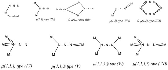 - Dori, Z.; Ziolo, R.F. Chemistry of coordinated azides. Chem. Rev. 1973, 73, 247–254. [Google Scholar] [CrossRef]