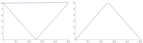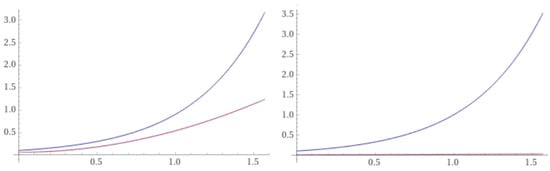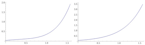 for all . Additionally, for any we have . Consequently, we have the Hyers–Ulam–Rassias stability of the integro-differential Equation (44). If we consider the exact solution , we obtain