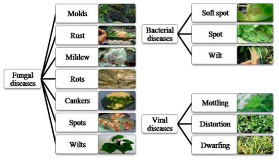 14. Madiwalar, S.C.; Wyawahare, M.V. Plant disease identification: A comparative study. In Proceedings of the 2017 International Conference on Data Management, Analytics and Innovation (ICDMAI), Pune, India, 24–26 February 2017; pp. 13–18. [Google Scholar] [CrossRef]