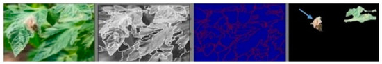 5. Jagtap, S.B.; Hambarde, S.M. Agricultural Plant Leaf Disease Detection and Diagnosis Using Image Processing Based on Morphological Feature Extraction. IOSR J. VLSI Signal Process. 2014, 4, 24–30. [Google Scholar] [CrossRef]