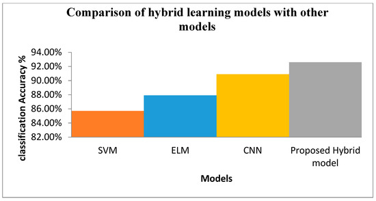 • Comparison of the hybrid model with support vector machine, extreme learning machine-based classification, and CNN.