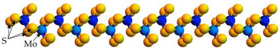 To the best of our knowledge, Figure 3 calculated for MoS2 has only qualitative analogue in the literature. Namely, the redistribution of Bader charges caused by the bending of phosphorene [] and graphene [] nanoribbons was calculated, and it appeared that the symmetries of Bader charges are broken under the applied strain gradient. This symmetry breaking is almost absent for the studied MoS2 (compare Figure 3 in this work with Figure 2 from [] and Figure 4 from []), but evidently present for the phosphorene and graphene nanoribbons. The possible reason is the small discrepancy in the net Bader charges of sulfur in a bended MoS2 monolayer, which are smaller than the charge discrepancy in phosphorene [] and graphene [].