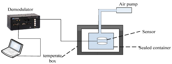 where, is the pressure sensitivity coefficient of FBG1 (nm/MPa); is the temperature sensitivity coefficient of FBG1; is the temperature change; is the pressure to be measured.