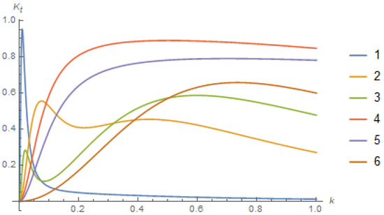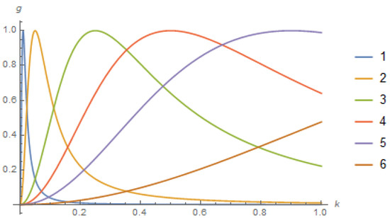 The parameters of the matrices (16) are imaginary by and real by . For the functions and , the conditions and are fulfilled. Hence, the expressions