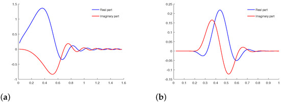 (ii) It is worth noticing that the proposed transform in Equation (7) encompasses several existing integral transforms, such as the classical wavelet transform, fractional wavelet transform, linear canonical wavelet transform, and so on [8,9]. The corresponding wavelet transforms can be obtained by choosing an appropriate symplectic matrix .