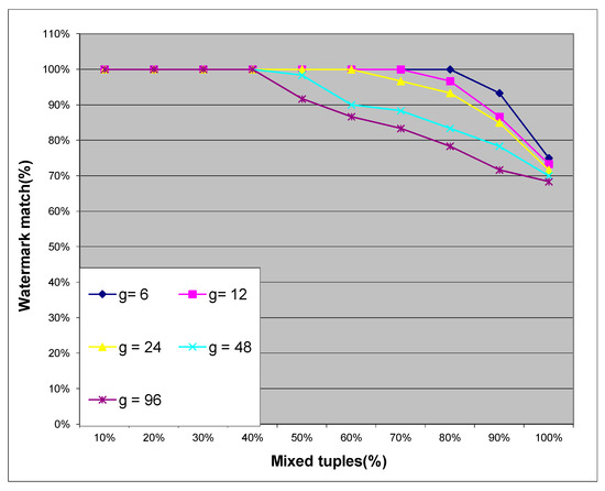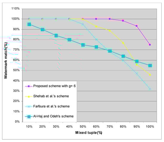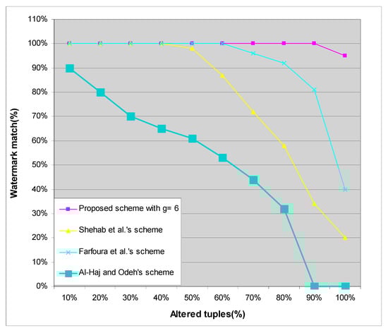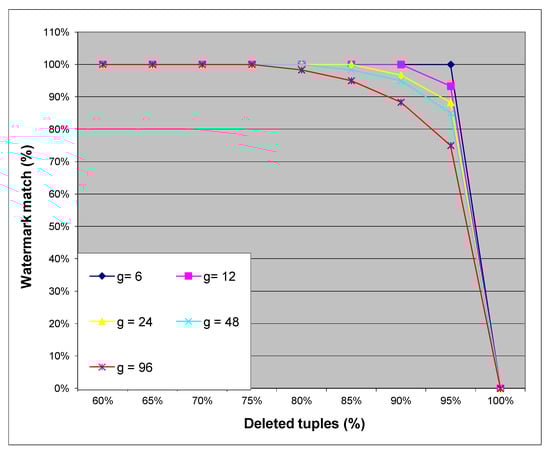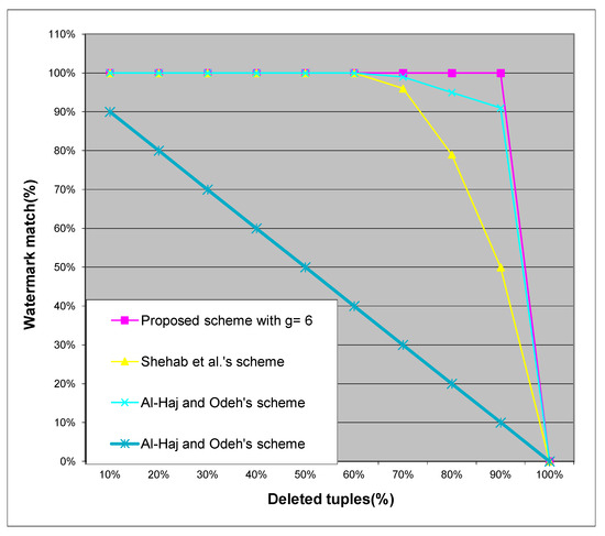 15]. Moreover, the existing schemes can identify the hidden watermark successfully when only 10% of the tuples of the watermarked relational database