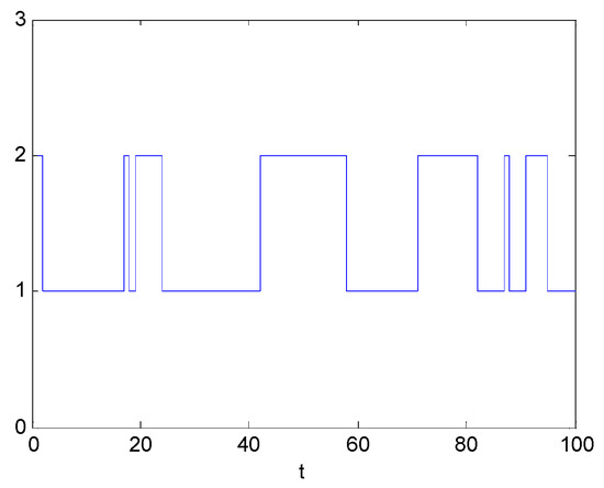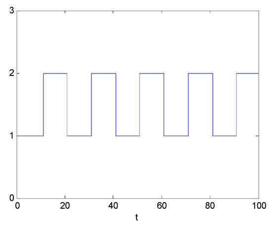 Figure 8 and Figure 9 give the deterministic switching signal and the state responses, respectively.