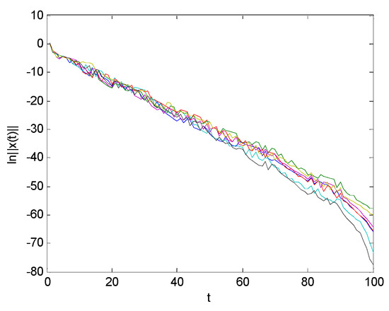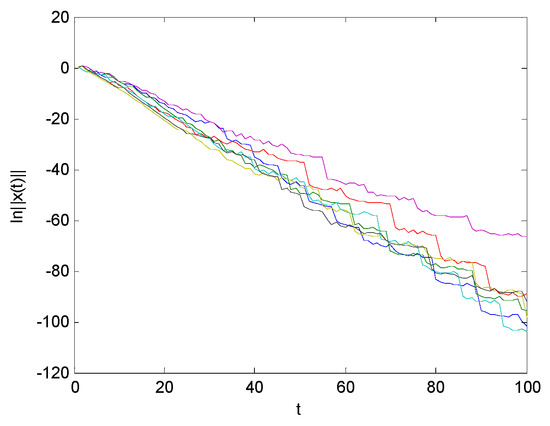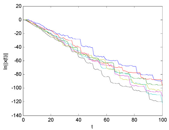 For 1-moment exponential sign stability, , the ADT of 1-moment exponential sign stability is ; for EMS sign stability, . The numerical verification of the 1-moment exponential stability and EMS stability follows.