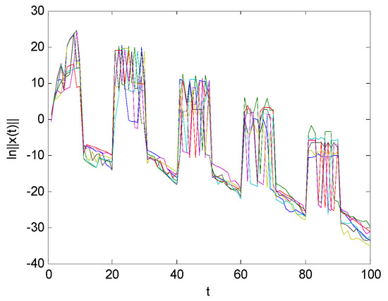Because the first subsystem matrices do not meet the conditions, when switching to the first subsystem it can be seen from Figure 7 that the state trajectories are unstable.