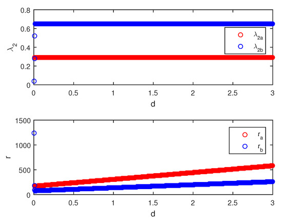 Similar to the network structure of in Figure 2, each layer has the same topology. We assume that a is the intralayer coupling strength and d is the interlayer coupling strength. According to the concept of supra-Laplacian matrix, it is not difficult to obtain the supra-Laplacian matrix of :