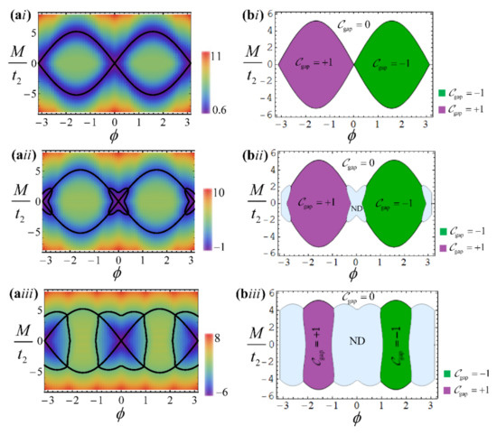 - Haldane, F.D.M. Model for a quantum Hall effect without Landau levels: Condensed-matter realization of the “parity anomaly”. Phys. Rev. Lett. 1988, 61, 2015–2018. [Google Scholar] [CrossRef]