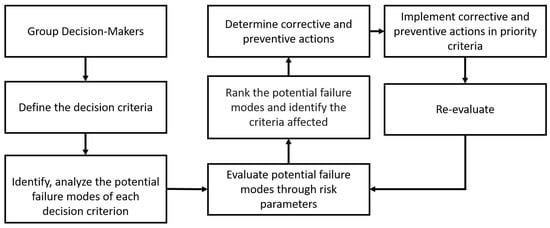 In this regard, it is advisable to adopt decision makers, experts in the areas of interest and the opinion of the client or users specifying the level of knowledge, from each area of the project within the risk analysis and analyze the problem under a Pythagorean fuzzy (PF) environment to manage uncertainty and improve the definition of projects. Also, multi-criteria decision-making (MCDM) can bring certainty for FMEA, and which consider the relative importance of risk factors and prioritize the identified failure modes using mathematical models to reduce the error of the calculation [19].