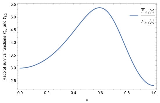 (ii) Let , , and . Then, and . However, Figure 6b shows that there exists no usual stochastic ordering between and .