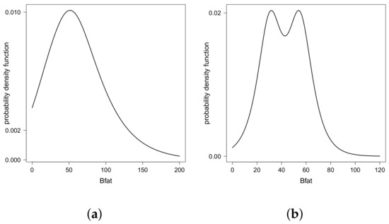 - Gómez, H.W.; Elal-Olivero, D.; Salinas, H.S.; Bolfarine, H. Bimodal extension based on the skew-normal distribution with application to pollen data. Environmetrics 2018, 22, 50–62. [Google Scholar] [CrossRef]