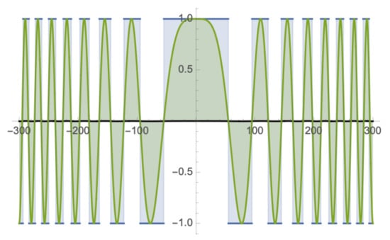 Figure 4 shows the History Map of a far-field record of the intersection of the boosted images of the right side of the chains, along the x-axis [4,12].This is shown at fixed t for particle speeds . Plotted with this far-field record is the real part of the Feynman non-relativistic propagator for an electron. We can see visually the synchronization of the two. Only one parameter, the mass in appropriate units, fixes the synchronization that persists for many, many cycles. This suggests that a smoothed version of a timestamp might produce the propagator in detail, thus providing a connection between timestamps and quantum propagation.