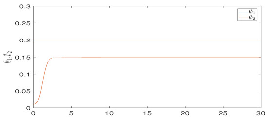 In addition, based on (87) and Lemma 4, we can obtain that is bounded, and the boundedness of can be guaranteed. Therefore, the following inequality can be obtained