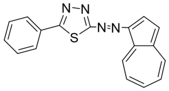 - Razus, A.C.; Birzan, L.; Cristea, M.; Tecuceanu, V.; Draghici, C.; Hanganu, A.; Maganu, M.; Pintilie, L.; Ungureanu, E.M. New (Azulen-1-Yldiazenyl)-Heteroaromatic Compounds Containing 1,2,5-Thiadiazol-3-Yl Moieties. Rev. Chim. 2019, 70, 1518–1529. [Google Scholar] [CrossRef]