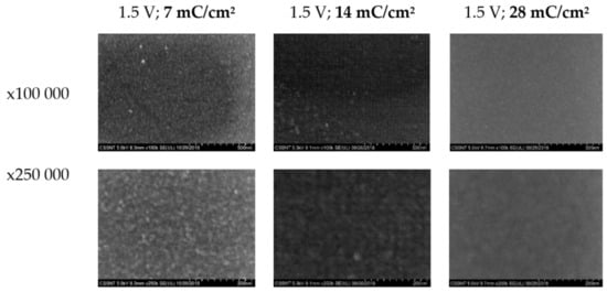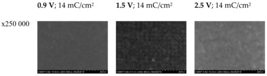 | SEM (14 mC/cm2) | Thin film | - | Nanostructured film | Amorphous film |