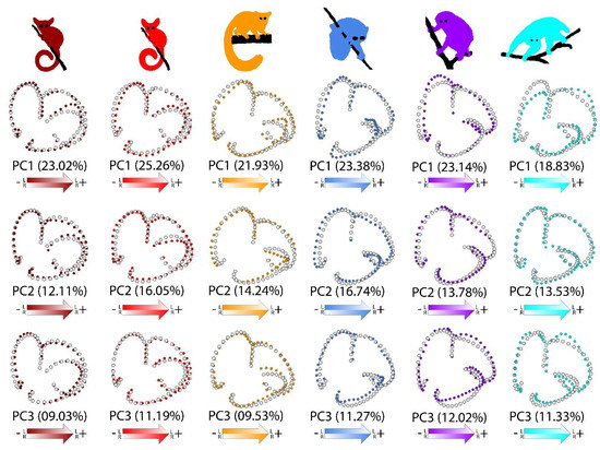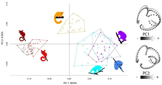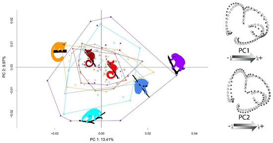 3.2.1. Interspecific Patterns of Shape Variation Revealed by PCA