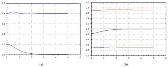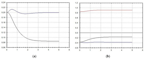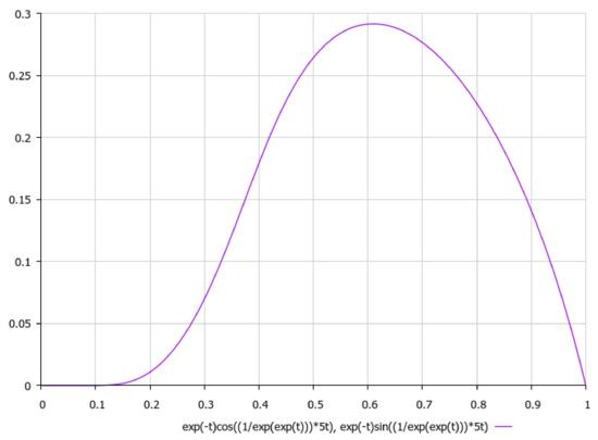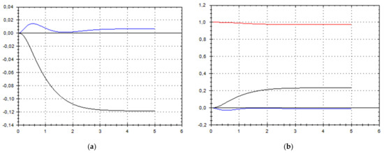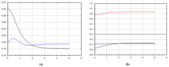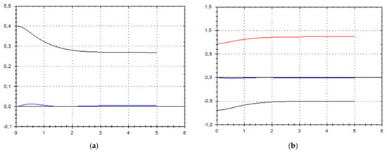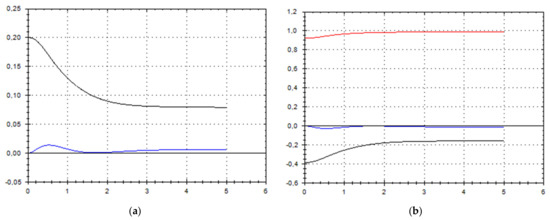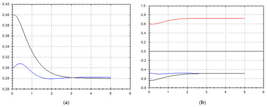 Let us schematically imagine at Figure 1, Figure 2, Figure 3, Figure 4, Figure 5, Figure 6, Figure 7, Figure 8, Figure 9, Figure 10, Figure 11 and Figure 12, the appropriate components of velocity field {u1, u2, u3}, according to Formula (10) (which corresponds to the approximate solutions of system (9) for {a, b}, as well as to the chosen parameters of asymptotic flow (5) given in Figure 13), as well as let us imagine solutions {a, b} themselves there. We should note that we have used, for calculating the data, the Runge–Kutta fourth-order method with a step of 0.001 starting from initial values: