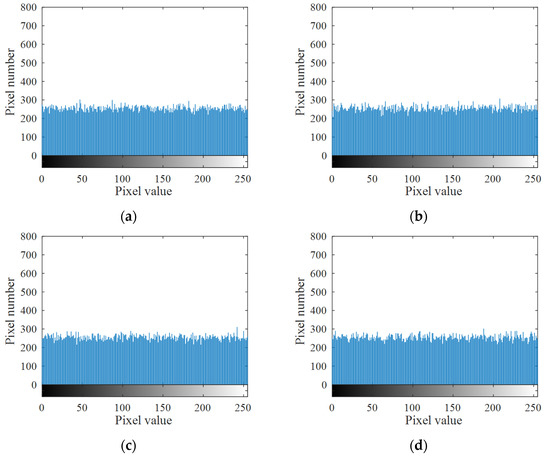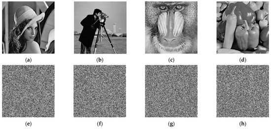 Among them, (xi, yi) represent a pair of gray values of two adjacent pixels in the image, and represents the number of total pairs of randomly selected pixels from the image. The correlation coefficient between adjacent pixels in the original image is very high. After this encryption algorithm, the correlation coefficient is reduced. Ideally, the correlation coefficient should approach 0 [51]. In our experiment, the 256 × 256 gray images Lena, Cameraman, Peppers, and House are tested, 65,280 pairs (horizontal or vertical direction) or 65,025 pairs (diagonal direction) of adjacent pixels are selected, and the correlation coefficient comparison is shown in Table 11.