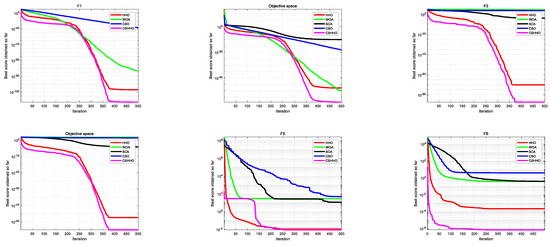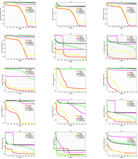 All experiments were performed using the classical 23 test functions [70,71] to test the performance of each algorithm in terms of convergence speed and search accuracy. These Benchmark functions were divided into three categories, including unimodal (UM) and multi-modal (MM). F1–F7 were the UM functions, which had unique global optimality and were used to test the exploitation performance of optimization algorithms. F8–F23 were the MM functions, which were used to test the exploration performance of the optimization algorithm and LO avoidance potentials. As the complexity of the test functions increased, the tested algorithms were more likely to fall into local optima, and all the test functions were used to evaluate the performance of the tested algorithms in various aspects. The convergence curves and test values of the corresponding test functions are given. Appendix A shows the classical 23 test functions.