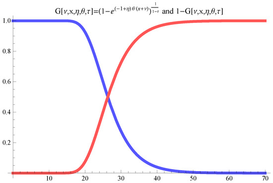 An example of a function G of Definition 2 is the function given by Formula (9) and depicted in Figure 1. In this example, the parameter controls the extension of the regime changing interval .