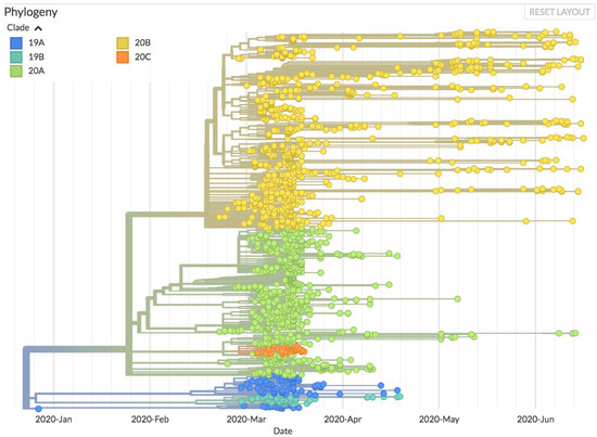 Clades and strains of SARS-COVID-19 in Portugal by Instituto Ricardo Jorge.