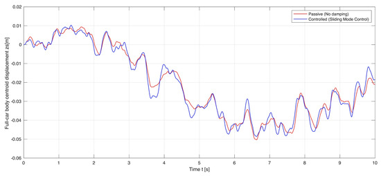Passive and controlled displacements of the full-car body centroid: Full-car body centroid displacement when .