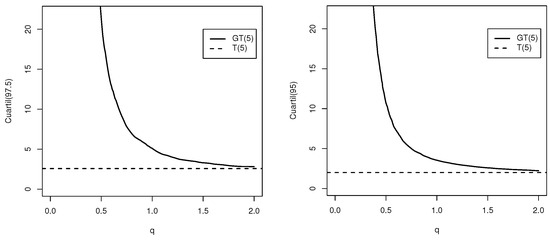 Figure 2 shows the quantile function of the generalized student’s t distribution compared to quantile function of student’s t for different values of q and .