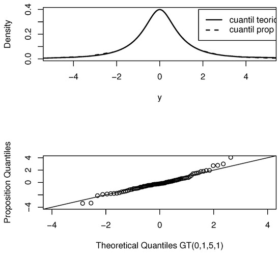 the response variable , it is possible to generate random numbers for the distribution, which the parameters , , and q they are estimated using maximum likelihood for the data. Then, one way to obtain the quantiles of Y is using the stochastic representation.